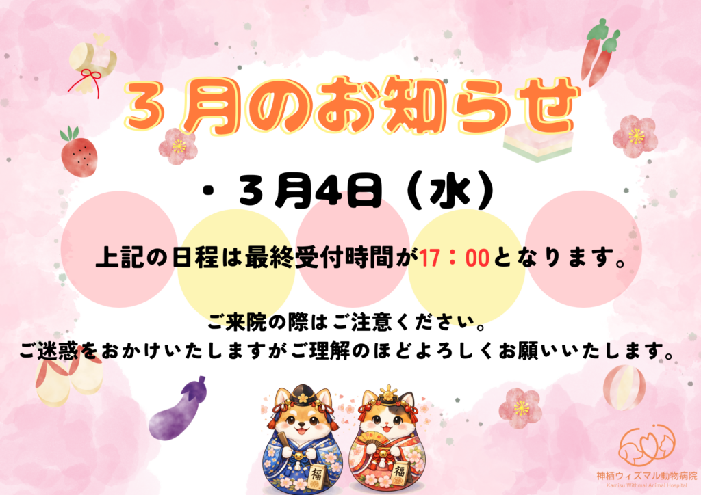 こんにちは、神栖ウィズマル動物病院です🐾 だんだん気候も暖かくなり過ごしやすい季節になっ…